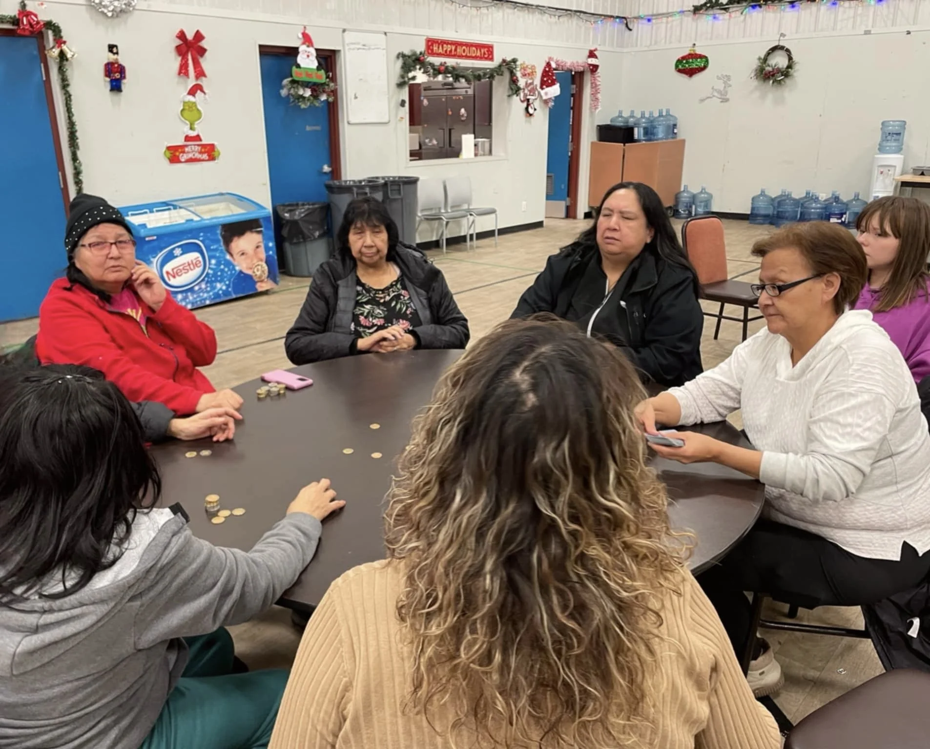 Cree Matriarchy by Karleen Anderson. Here we see a group of women playing bingo with their friends. But when you look closer within, you see Indigenous women that hold powerful roles within our societies. They are grandmothers, mother's and aunts to everyone in our community and they are the women that hold our community together.