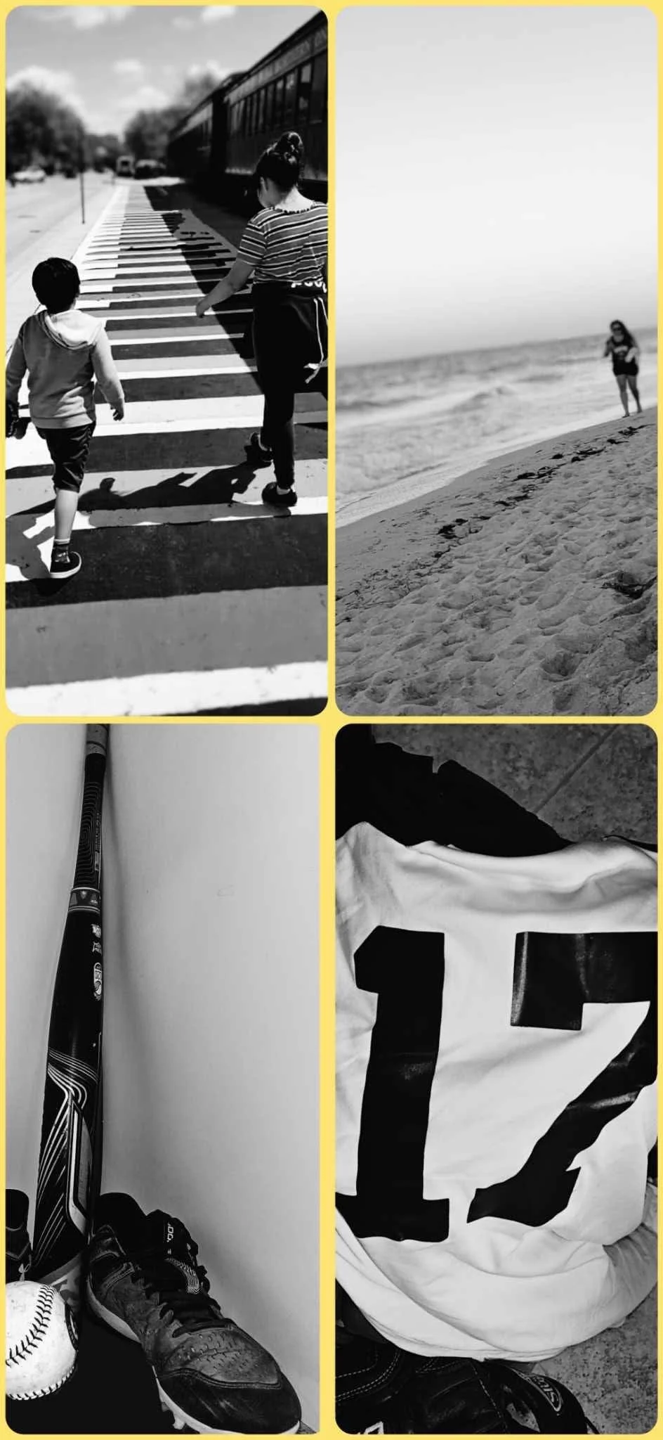 By Tori Sinclair. For the physical aspect, I included pictures from walks and baseball. Walking has been my way to ground myself, especially when I feel lost. The photo with my kids shows our shared growth and the importance of nurturing our identities together. Sports have also played a big role in connecting me to community and having a sense of belonging.