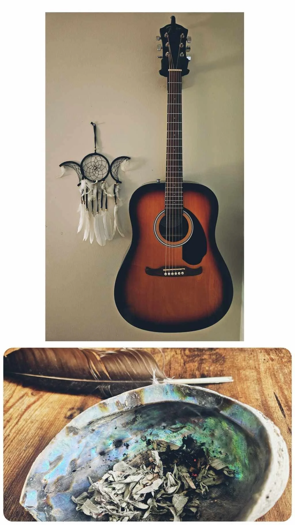 By Tori Sinclair. In my photos on Indigenous perspectives on identity I use the medicine wheel as my guide. Each section represents a different aspect of who I am, and I’ve chosen photos that really reflect my journey. Starting with the spiritual side, I have a photo of my guitar and my smudge bowl. This captures how music has been a huge part of my life, especially during tough times when I was trying to figure out my identity. As I learned more about Indigenous medicines and healing, I found a deeper connection to my roots and spirituality. The music reflects the times I felt lost and how no matter what music is what kept a piece of identity that was always there even through the times I didn't know who I was during growing.