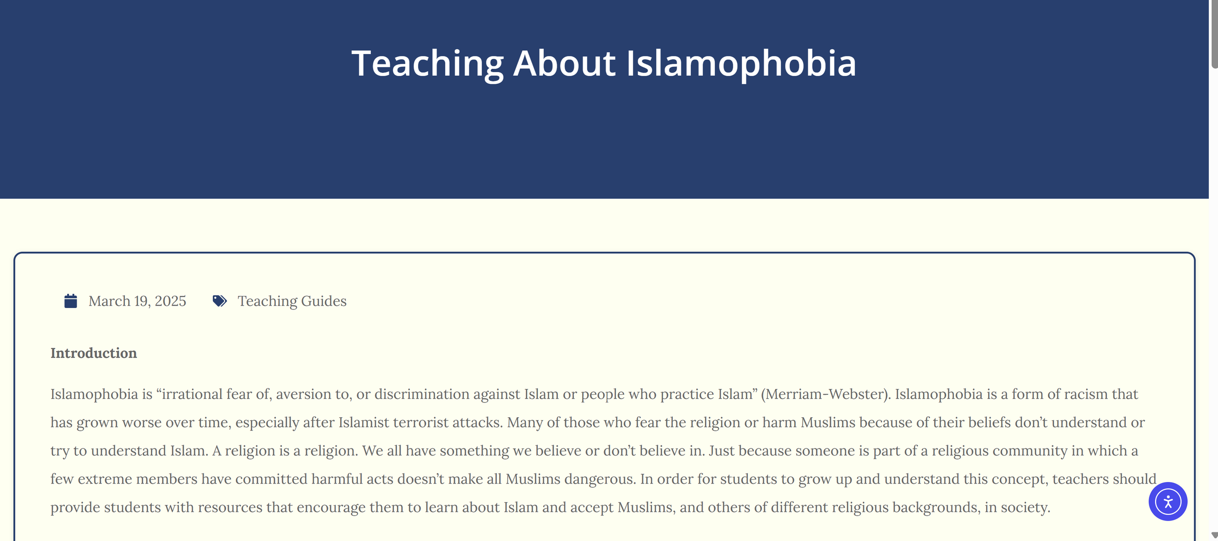 Educators 4 Social Change compiled a list of many resources available for teachers to use when teaching their class about Islamophobia.